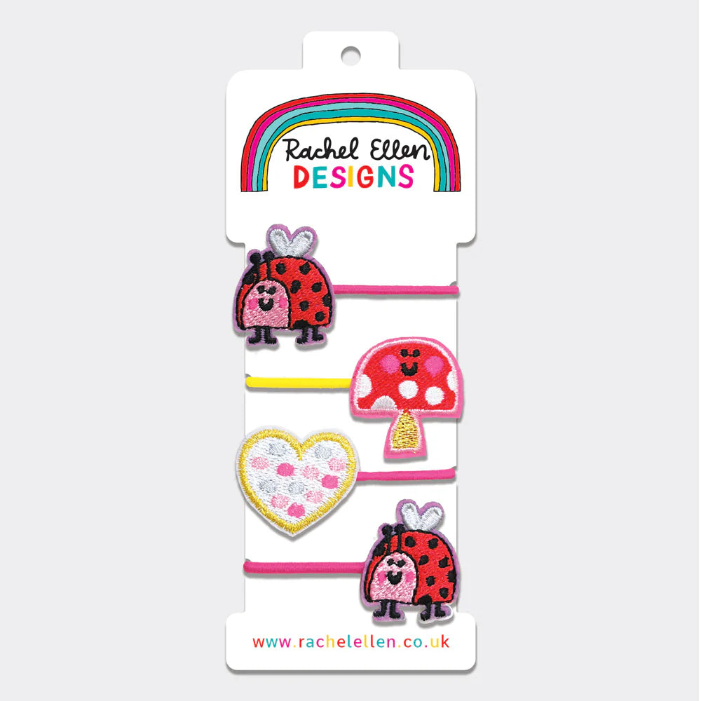 Hair Elastics (4 Pack) - Ladybird, Toadstool, Heart