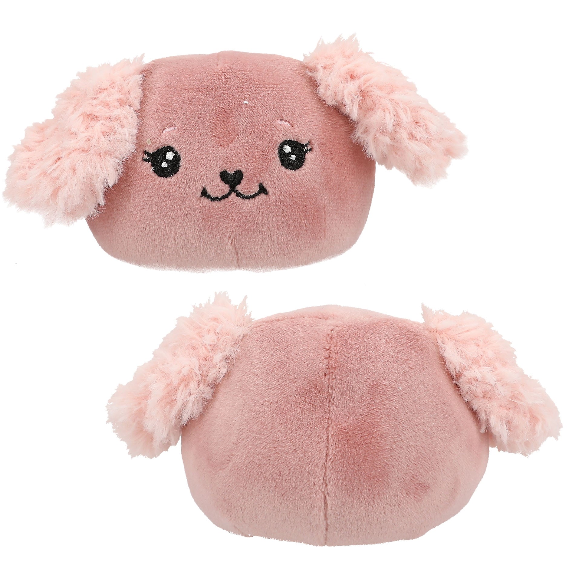 For cuddling, snuggling and relieving stress: The plush Swoppie balls are available as a light green dragon with orange hair, a pink lamb with curly floppy ears, a brown monkey with a funny mop of hair, a blue dog with colourful floppy ears and a dark blue bat.
